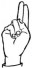 На ћирилици написано ЈЕЛИСАВА ЖЕГАРАЦ састоји се из 15 слова [?]. Исписано ћириличном једноручном азбуком за глувонеме: